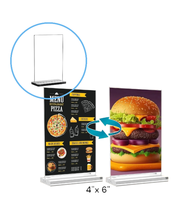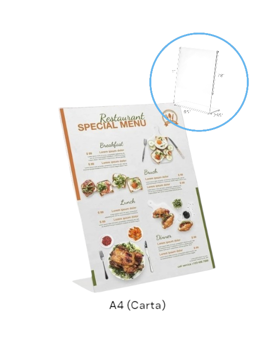 Soporte Hablador para Menú Acrílico A4 (tamaño carta) / 4"x6" (tamaño americano) / inclinado (Tamaño carta)