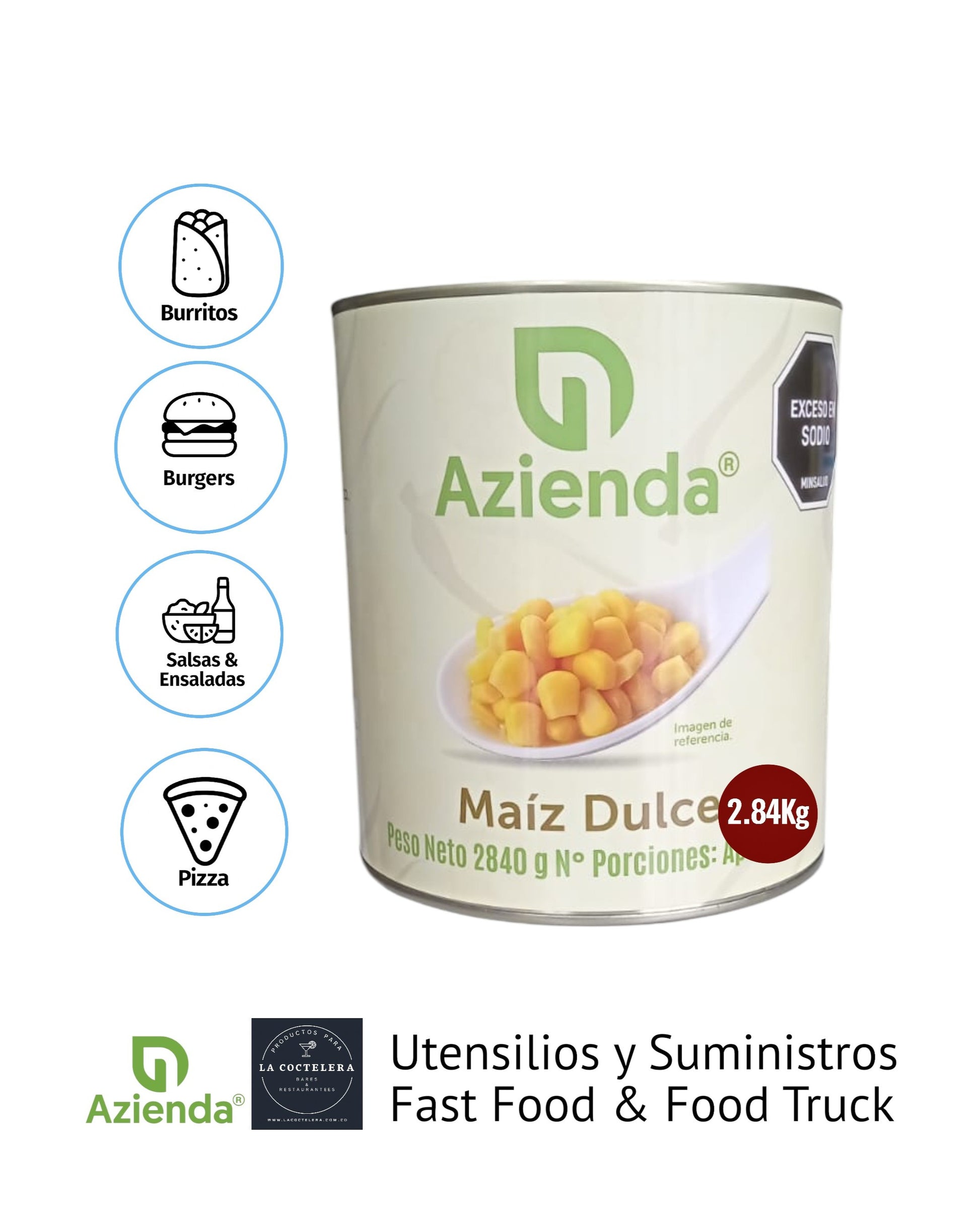 Maíz Dulce Azienda en Lata 2.84 kg | Ideal para Pizzas, Burritos, Ensaladas, Comidas Rápidas, Foodtruck
