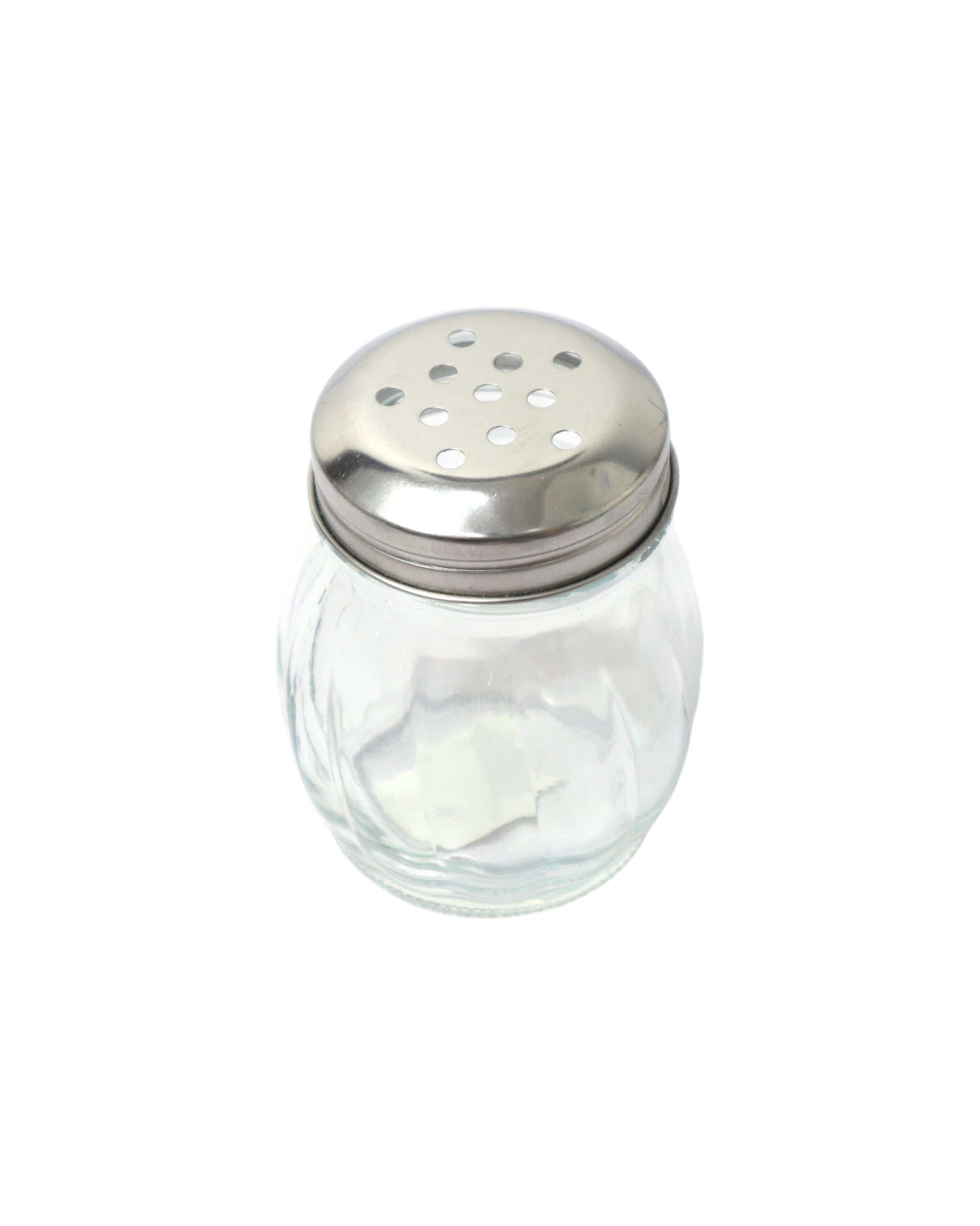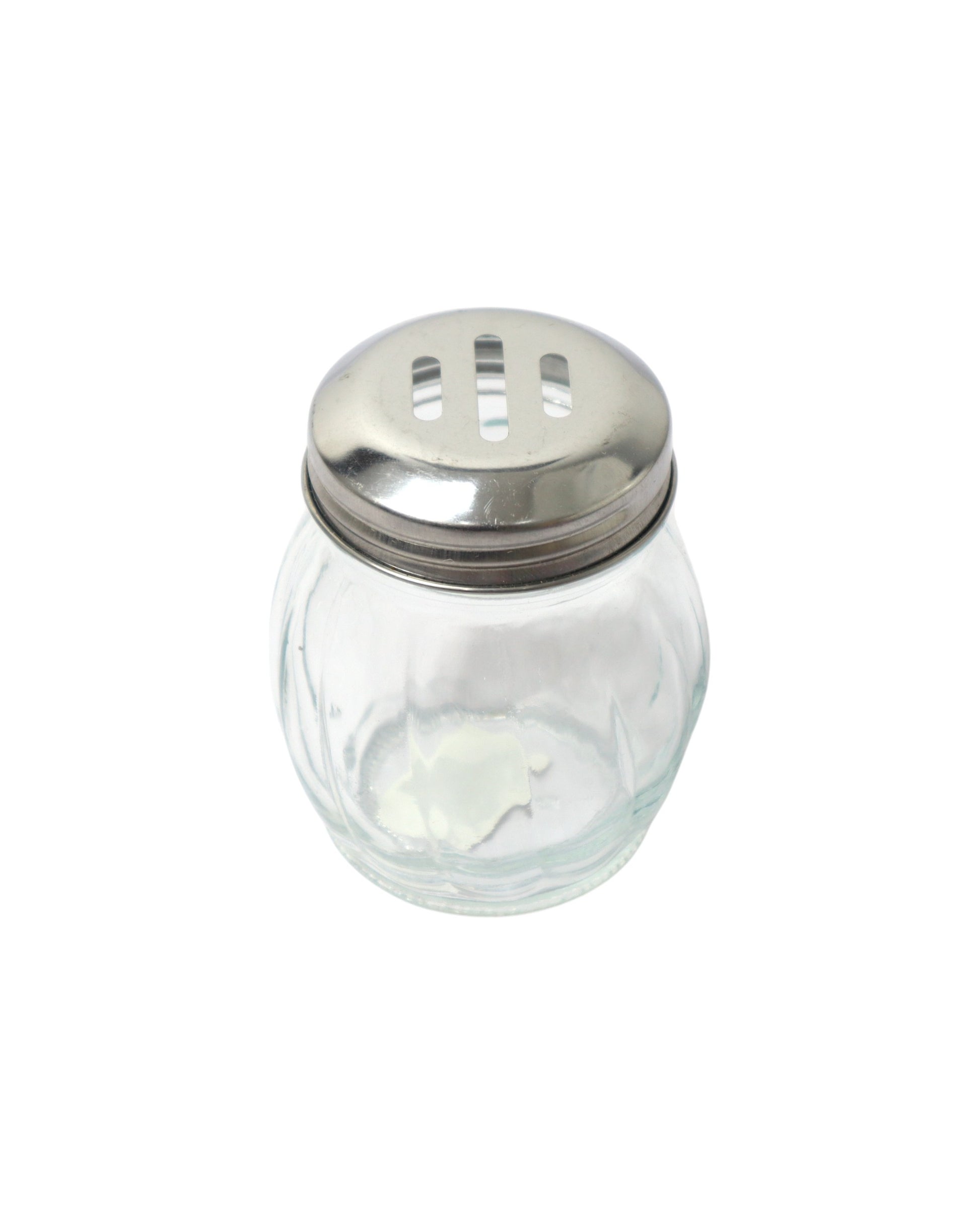 Este set de dispensadores de vidrio con tapa metálica es el clásico de pizzerías, restaurantes italianos y foodtrucks. Su diseño permite dos tipos de servicio: una tapa con ranuras amplias para ingredientes más gruesos y una tapa perforada para especias finas.