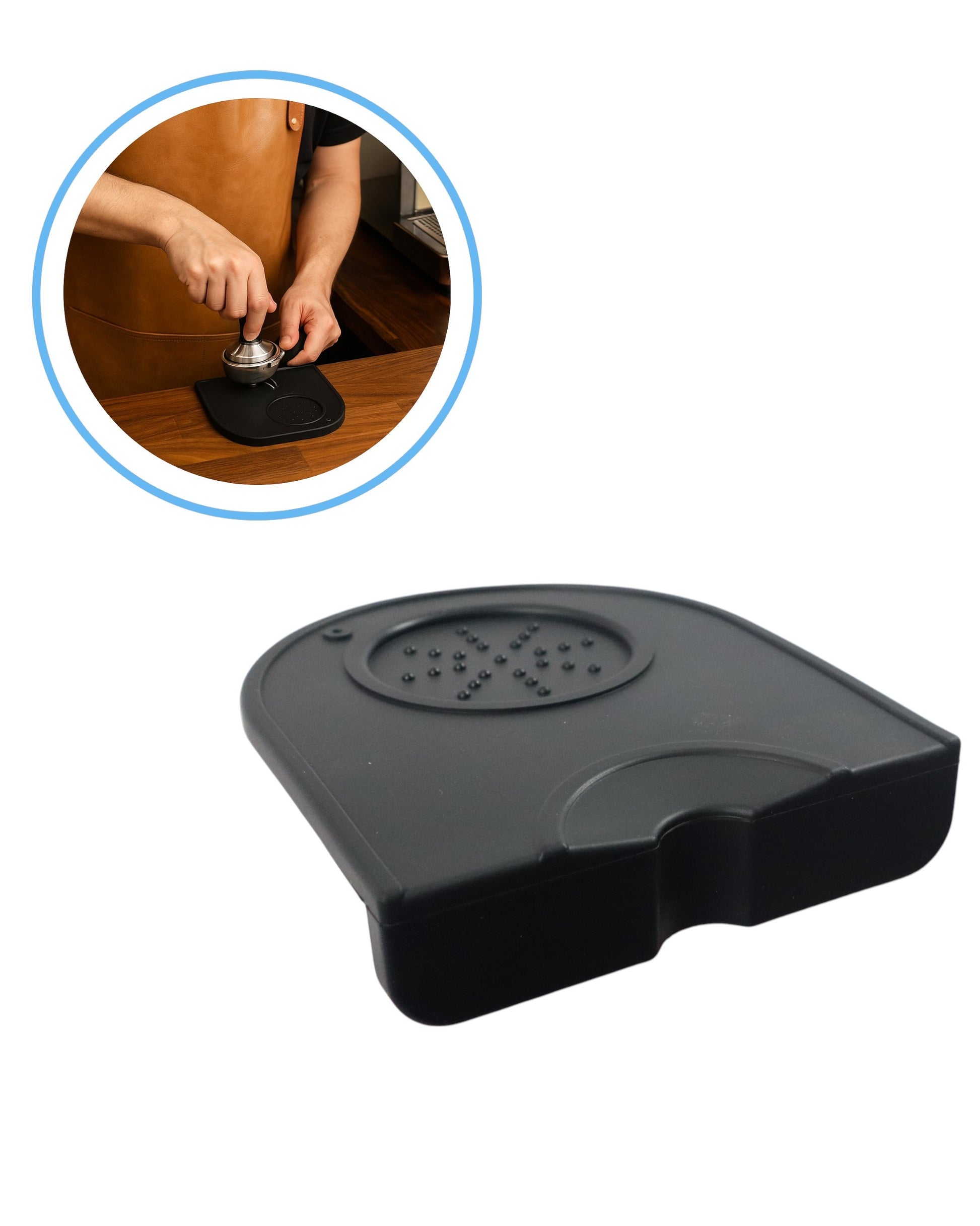 El Tapete de Silicona para Prensado de Café de 15 x 12 cm es el aliado perfecto en estaciones de baristas. Protege la mesa de trabajo y asegura estabilidad al usar el portafiltro y el tamper, permitiendo un prensado uniforme y profesional en cada preparación.
